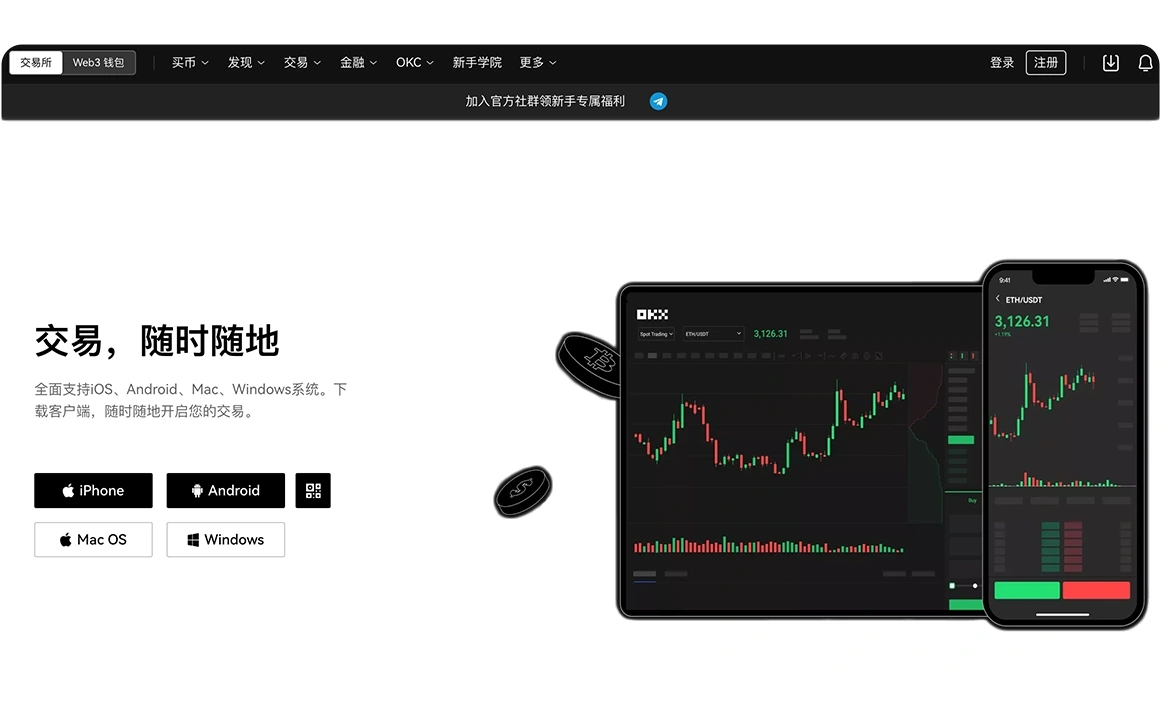 欧易iOS/Android客户端融合行情、交易、资讯、钱包四大核心功能